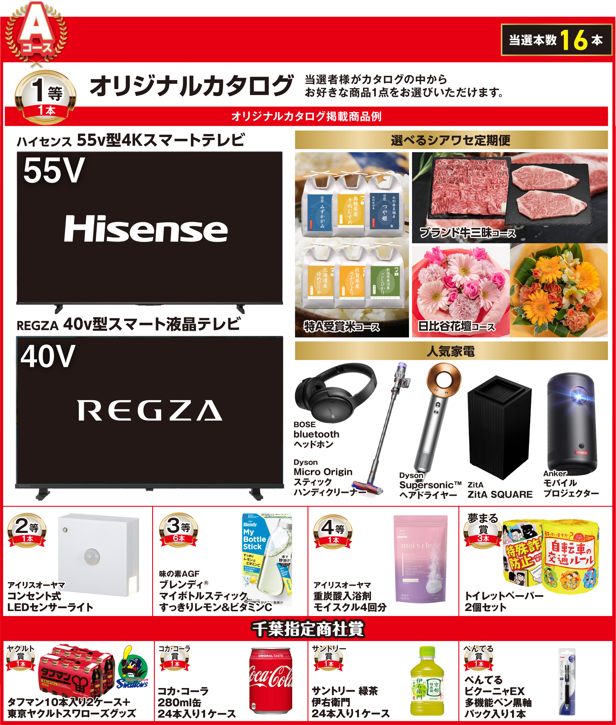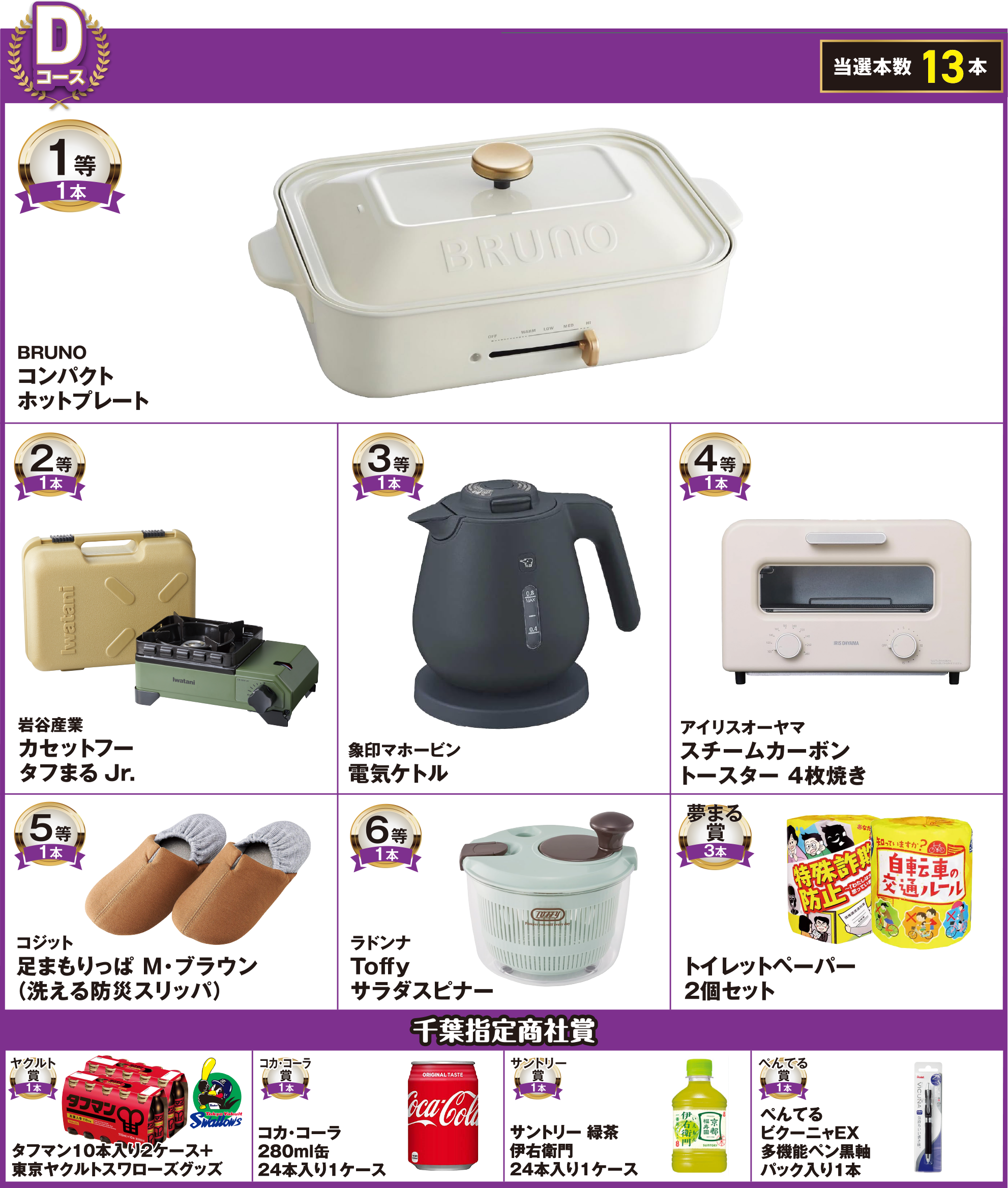 - ※画像はイメージです。 各賞品はモデルチェンジ等により、デザイン・内容が変更になる場合がありますので、予めご了承ください。